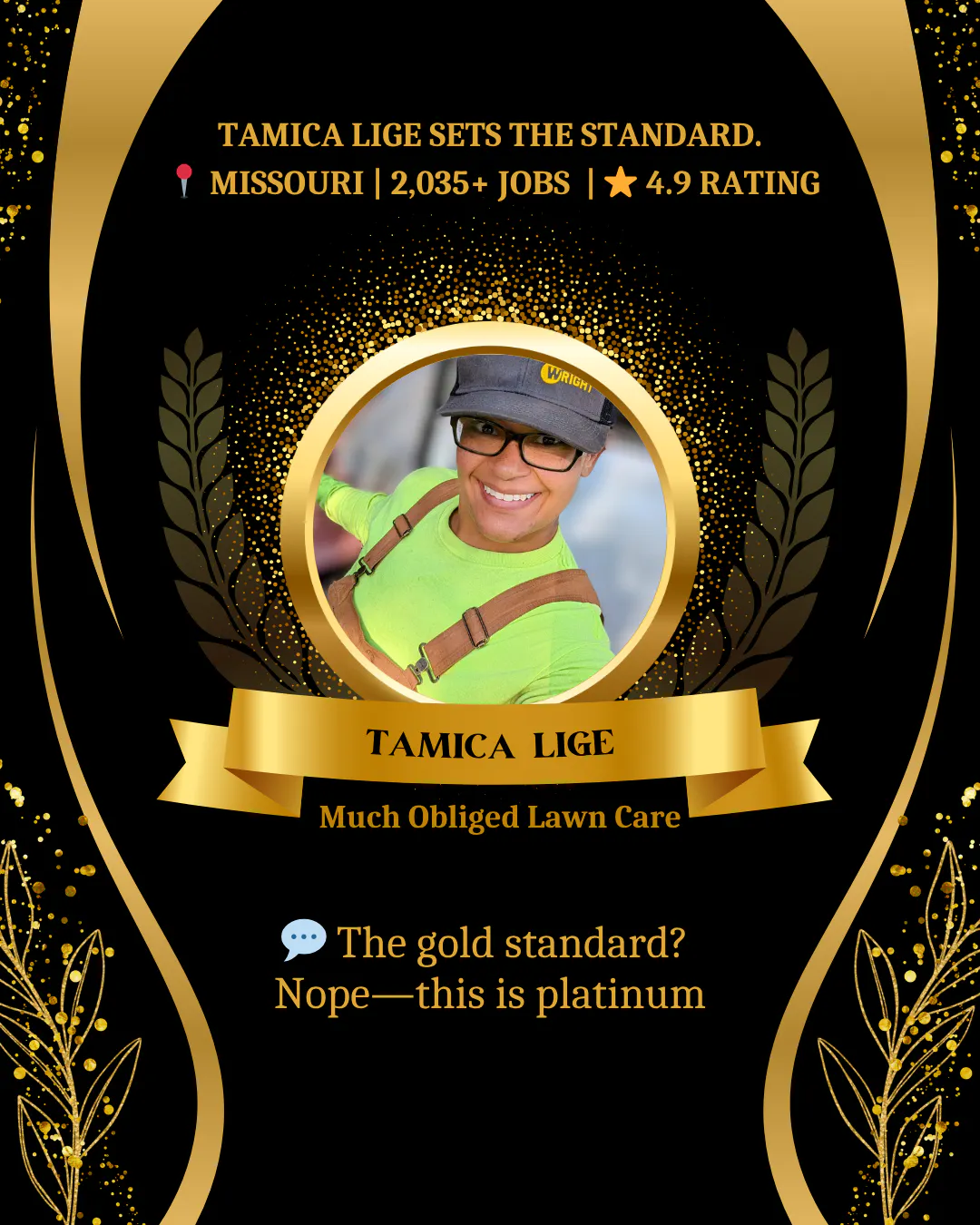 Tamica Lige doesn't do 'good enough.' Every property gets the Much Obliged treatment—sharp edges, tight lines, and that 'dang, who did your lawn?' reaction from the neighbors.